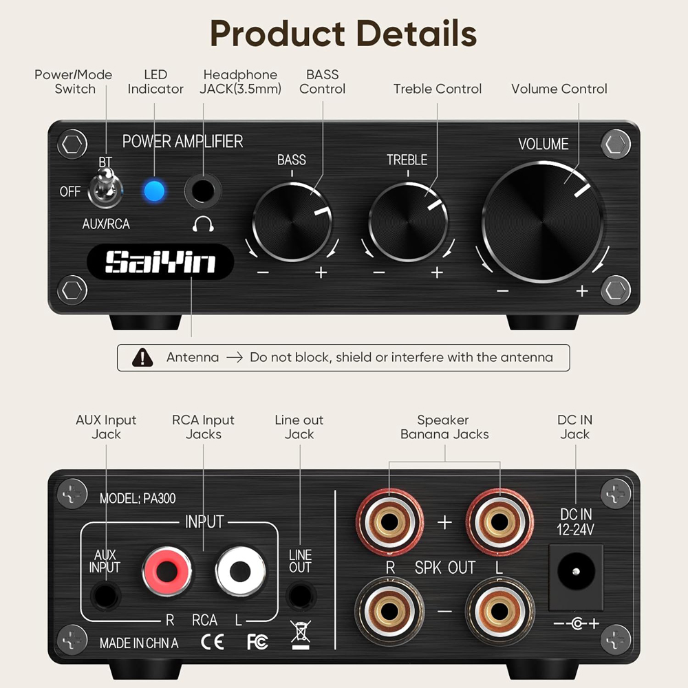 Wireless Bluetooth Stereo Power Amplifier: Bluetooth amplifier has the advantages of high speed and stable transmission, low power consumption, long transmission distance, automated reconnection to the last connected device, no popping sound and noise; it is suitable for the latest device, including smart phone, laptop, tablet, computer