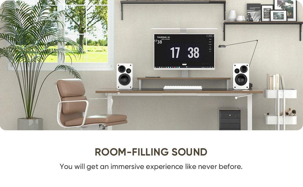 【Classic Wooden Bookshelf Speakers】Saiyin computer speaker‘s simple and stylish white wood grain exterior blends easily with a variety of desk style such as, home, RGB, office, cartoon style, etc. The 3D wood grain finish is not only visually beautiful but also provides an excellent sense of touch. The artificially polished rounded corners of the PC speaker are not only space saving but also add a touch of sophistication to your desk(Remote is not supllied) .