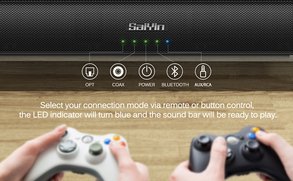 Wireless or Wired Connection, Easy Setup: Sound bar can be connected to most types of your devices via Wireless Bluetooth 5.0 connection, Optical, AUX(3.5mm), RCA, or Coaxial connection, Easily connect to your home theater, Smart TV, PC, phone, projector, DVDs, laptop, desktop, tablets, pad, and more. If your TV or other source devices only has a 3.5mm headphone socket, use the 3.5mm to RCA audio cable to connect the soundbar to your TV or other source devices.