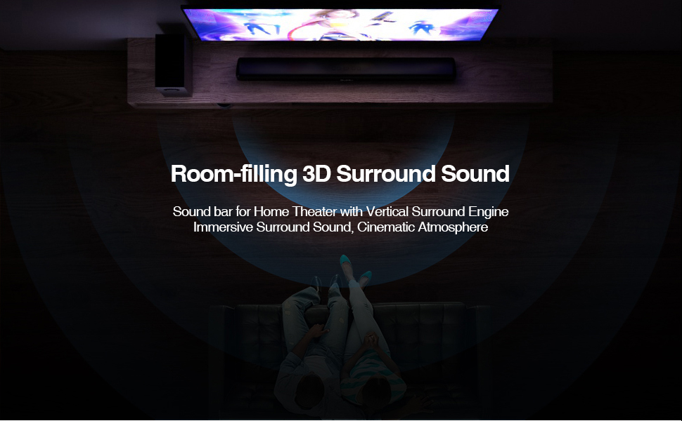 Sound Bar with Subwoofer Upgrade Your Home Theater Audio Experience: Powerful full-range drivers (total 70-watt output) deliver a more realistic, richer sound from a compact soundbar with deep bass. Sound Bar is a perfect TV speaker that optimizes sound clarity and creates incredible room-filling virtual surround sound.