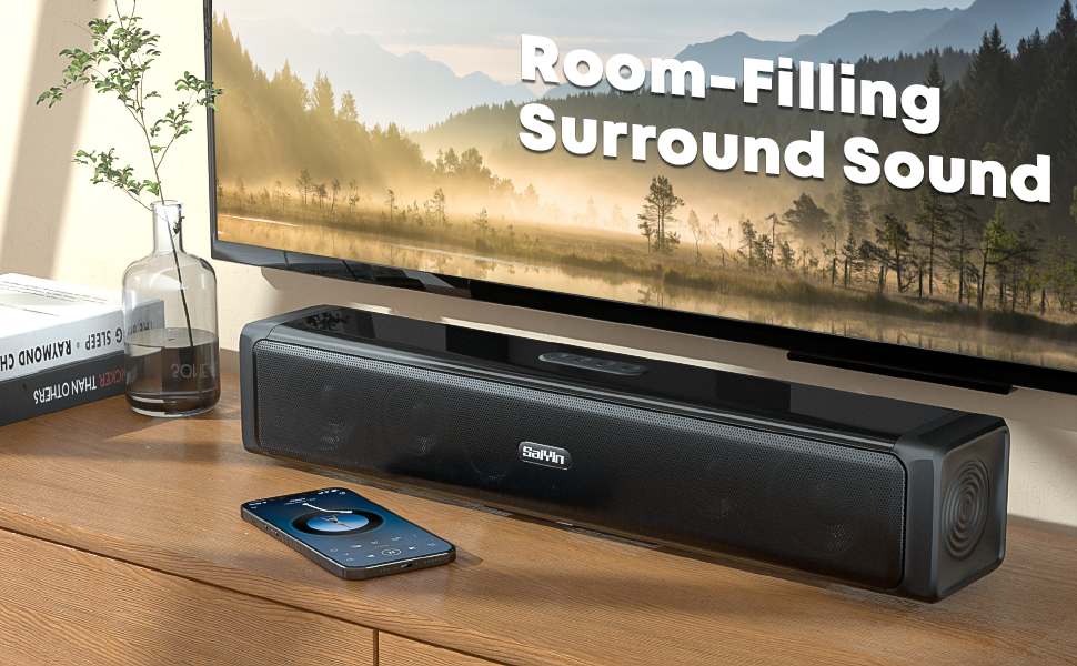 Extremely Stylish Design: This soundbar combines a robust build with a touch of elegance, showcasing a modern design that exudes sophistication. The TV soundbar‘s aesthetic appeal is complemented by its exceptional sound quality, delivering a rich and immersive audio experience. With the stylish design, you can choose to place the soundbar directly on the table, cabinet or mount it on a wall to save your space according to your home decoration style and personal preferences.
